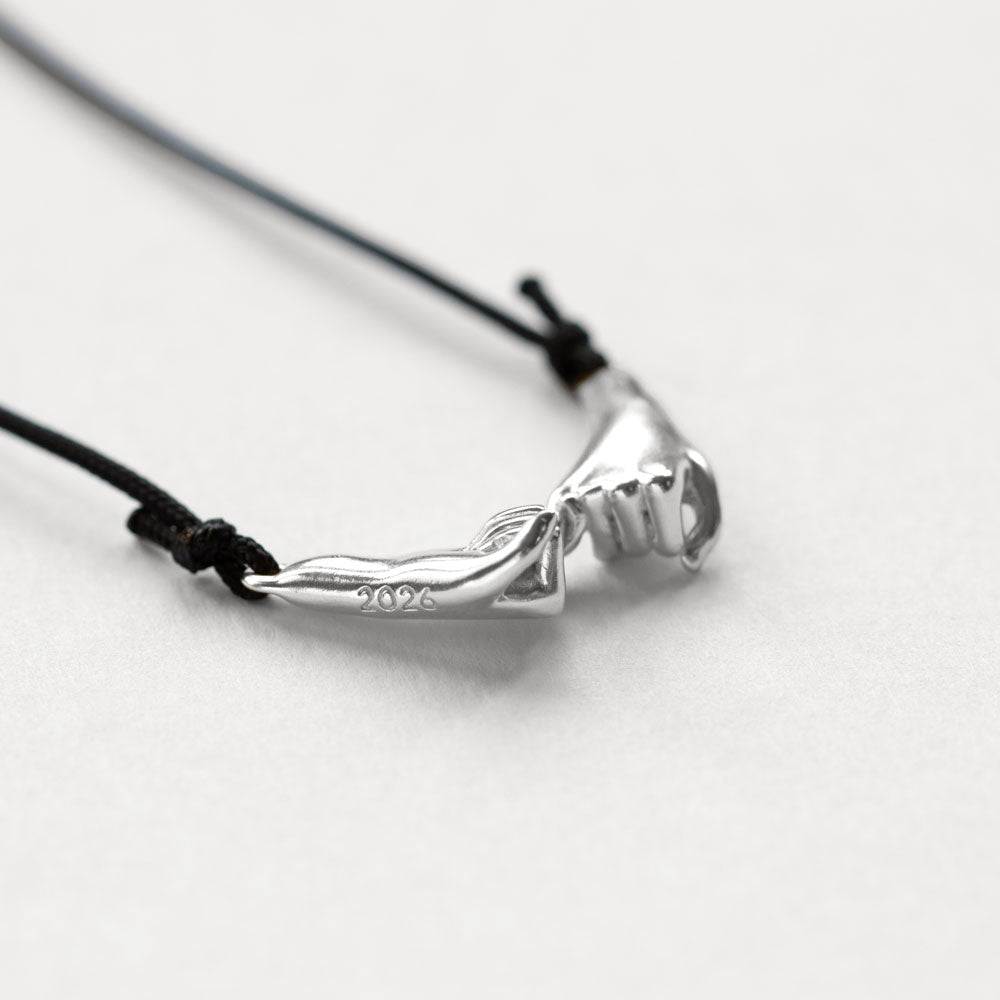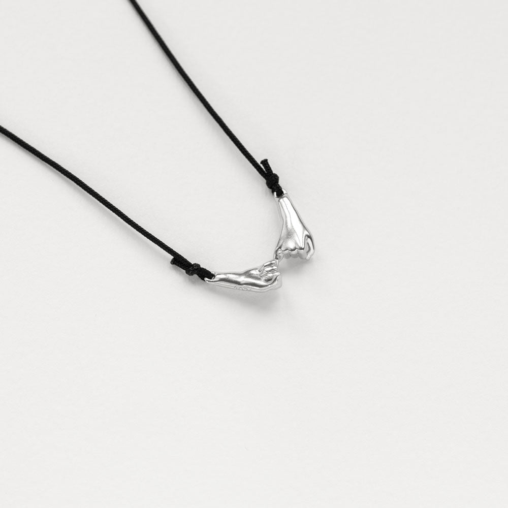 Pinky Promise Lucky Charm 2026 κολιέ ασημί με μαύρο κορδόνι